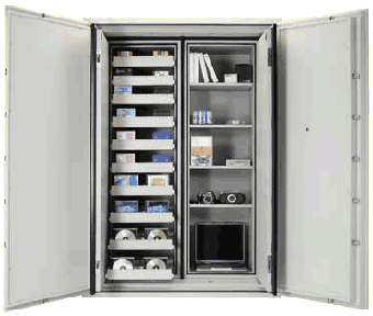 Phoenix Data Commander fireproof media safes carry a 2-hour fire-test rating — twice the U.S. Government and the U.L. Standard. In the event of fire, the interior of the Phoenix Data Commander media safes is designed to remain below 125 degrees F. and below 80% relative humidity. Phoenix offers secure protection for backups, software, CD's, DVD's, audio and video tapes and sensitive photographic emulsions. Each model comes to you standard with adjustable shelves, multi-media drawers and the latest state-of-the-art electronic (user-programmable) digital "push-button" locking system.